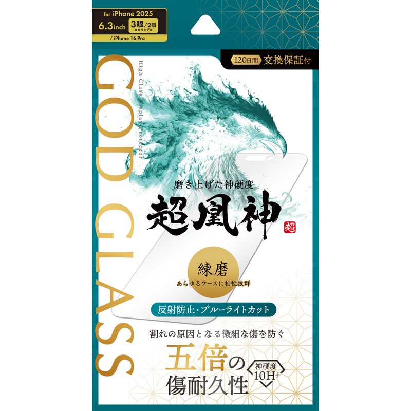 iPhone 17 Pro/17/iPhone 16 Pro ガラスフィルム 「GOD GLASS 超凰神」練磨 ブルーライトカット JAN:4582698118855 型番:GG-IP25GB カラー: