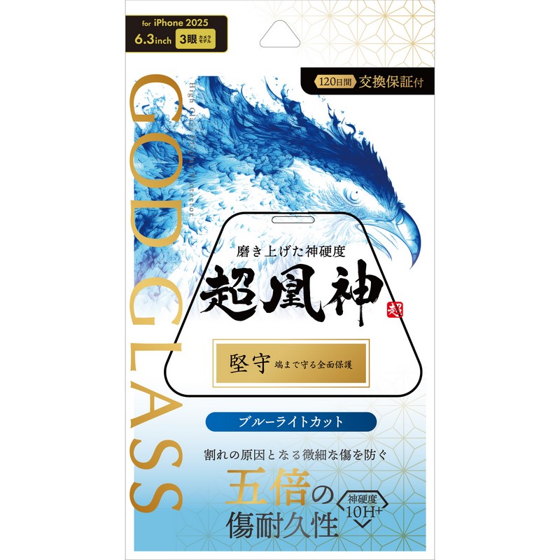 iPhone 17/iPhone 16 Pro ガラスフィルム 「GOD GLASS 超凰神」堅守 ブルーライトカット JAN:4582698118732 型番:GG-IM25GFB カラー: