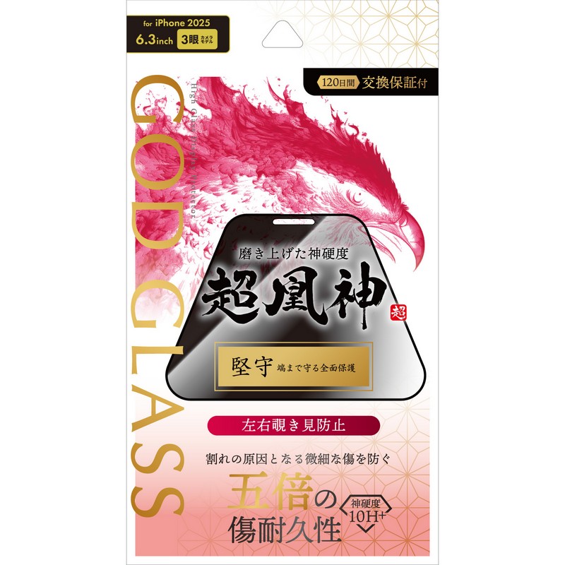 iPhone 17 Pro ガラスフィルム 「GOD GLASS 超凰神」堅守 覗き見防止180° JAN:4582698118916 型番:GG-IP25GFN カラー: