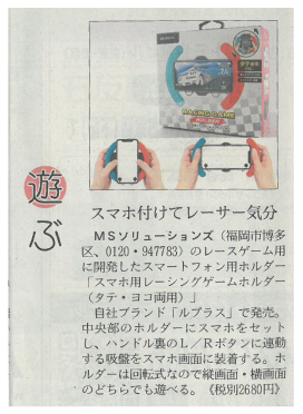 日経MJ 1月22日(水)発売 第6484号にRACING GAME HOLDER が掲載されました