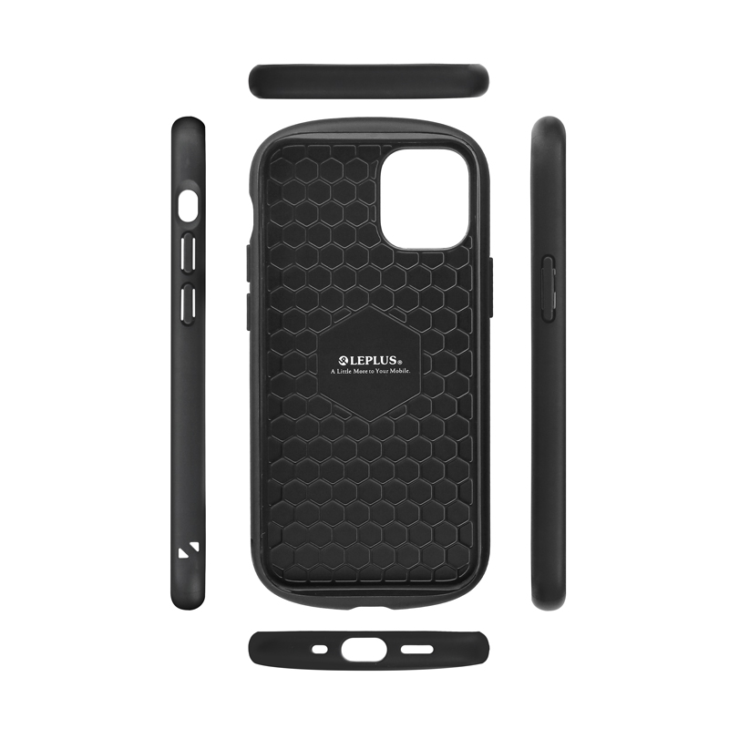 ケース背面内部の構造をハニカム構造にすることで、落下などの衝撃から端末を守る構造です。また、新たにケース側面内部にもハニカム構造を採用しており、従来品よりも耐衝撃性能がアップしました。