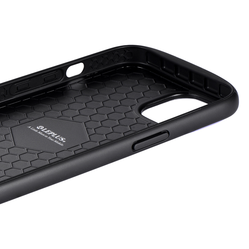 ケース背面内部の構造をハニカム構造にすることで、落下などの衝撃から端末を守る構造です。また、新たにケース側面内部にもハニカム構造を採用しており、従来品よりも耐衝撃性能がアップしました。