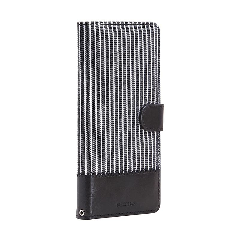 3. arrows NX F-02H ファブリックデザインケース「BOOK Fabric」 ストライプ柄(黒)
