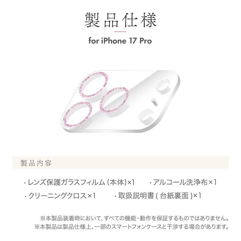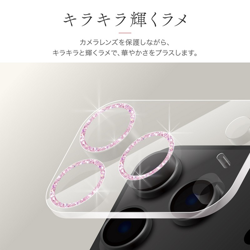 iPhone 17 Pro レンズ保護ガラスフィルム「SPARKLE LENS GLASS」全面保護 ピンク