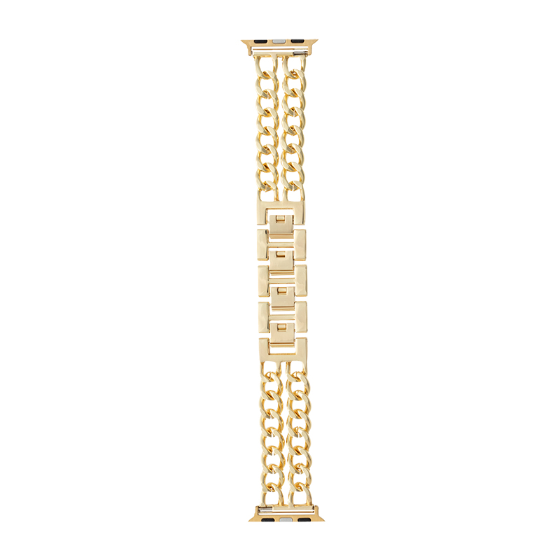 php // $web_item_description = wp_strip_all_tags( $web_item_description ); echo $web_item_description; ?> 本体との一体感が魅力のメタル製Apple Watchバンド/ブレスレット感覚でつけられる二つ折れ式バックル/インパクトのあるWチェーン