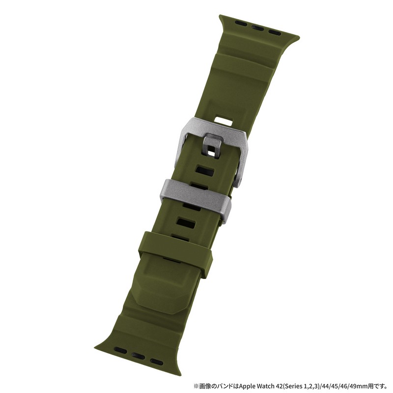 php // $web_item_description = wp_strip_all_tags( $web_item_description ); echo $web_item_description; ?> 耐久性の高いフッ素ゴムを使用した、アクティブシーンに最適な肉厚バンド/馴染みのある穴留め式バックルで着脱しやすい/高級感のあるマット仕上げバックル