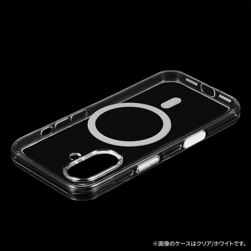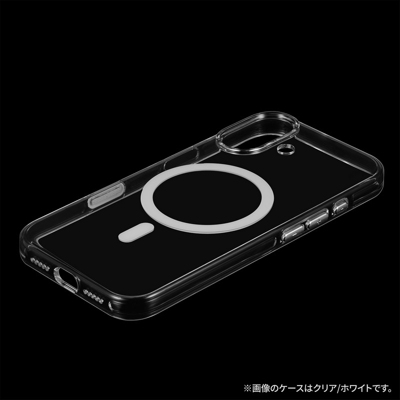 MagSafeアクセサリが使えるマグネットリング搭載/長期間使用しても黄変しない全面ポリカーボネート設計で美しさ長持ち/厚みがあり衝撃を分散するエア構造/カメラレンズ周りを高く設計/カメラコントロールボタンやその他各種ボタンまで保護する超精密設計