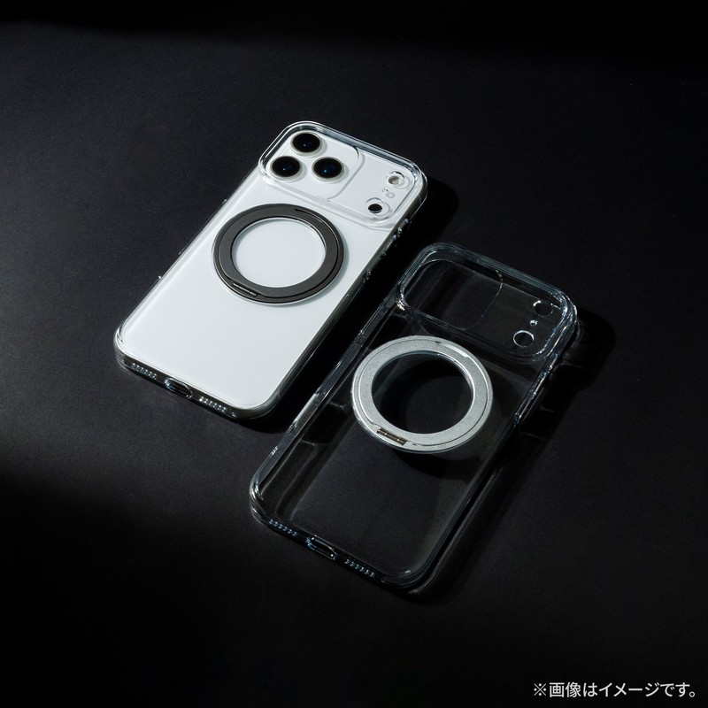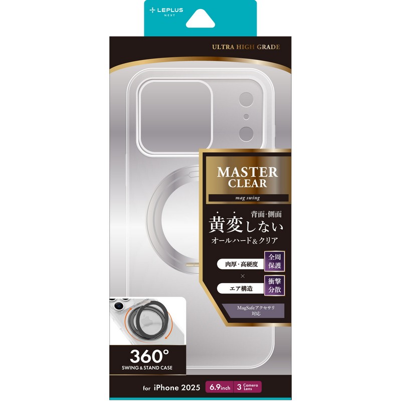 iPhone 17 Pro Max 360度回転スタンド付き超透明ハードケース 「MASTER CLEAR mag swing」 クリア/シルバー
