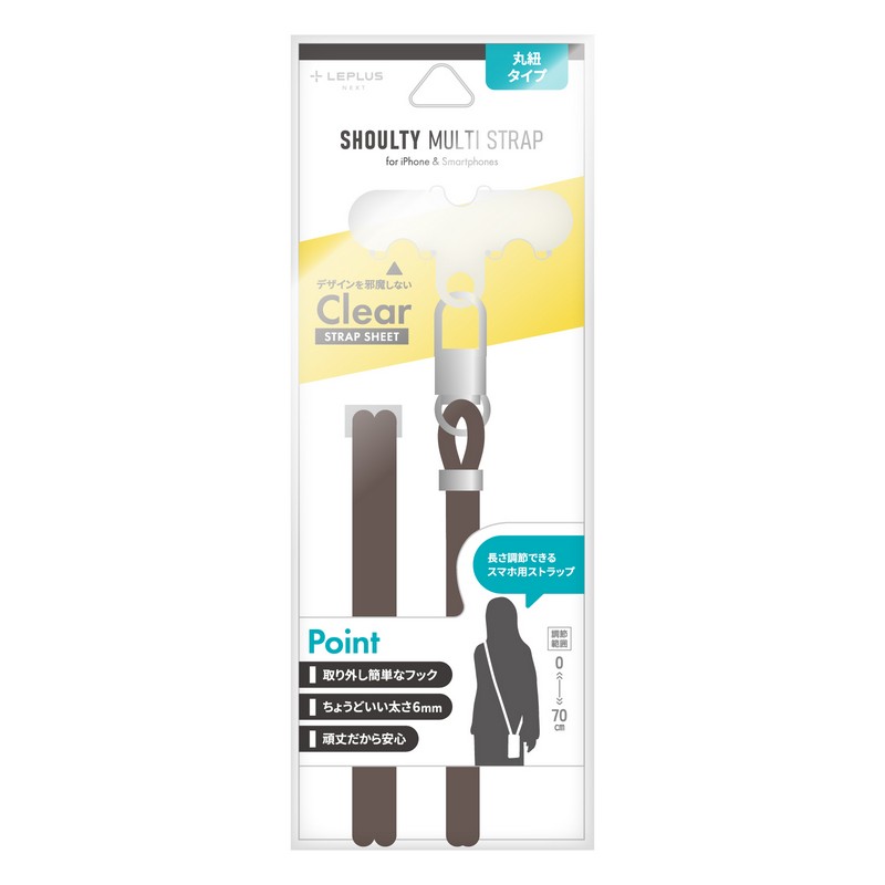 php // $web_item_description = wp_strip_all_tags( $web_item_description ); echo $web_item_description; ?> 端末やケースを選ばず装着できるスマホショルダーストラップ/ステッカーなどの装飾を邪魔しない、クリアな挟み込みシート付属/長さ調整可能/しなやかなφ6mmコード