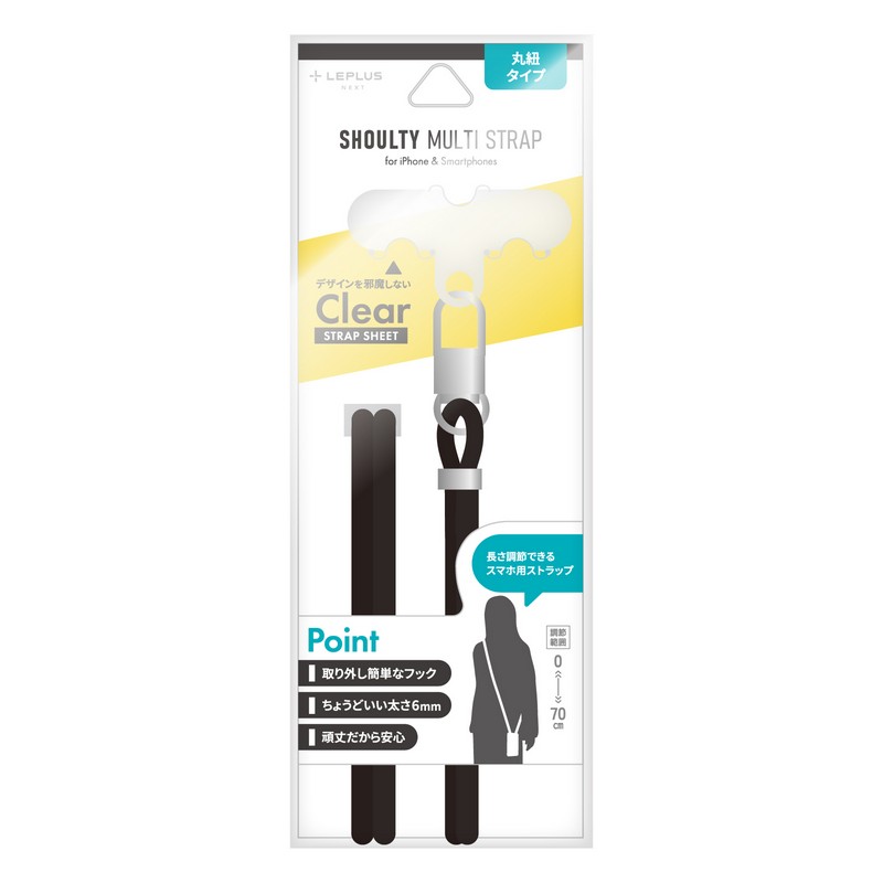 php // $web_item_description = wp_strip_all_tags( $web_item_description ); echo $web_item_description; ?> 端末やケースを選ばず装着できるスマホショルダーストラップ/ステッカーなどの装飾を邪魔しない、クリアな挟み込みシート付属/長さ調整可能/しなやかなφ6mmコード