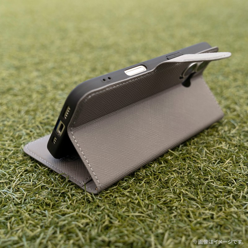 スリムで傷つきにくいサフィアーノ調の手帳型ケース/ピタッと固定できるマグネット仕様/耐衝撃TPUケース採用/大容量カード収納ポケット(3枚)+大型ポケット(1枚)/動画視聴に最適なスタンド機能/ストラップホール搭載