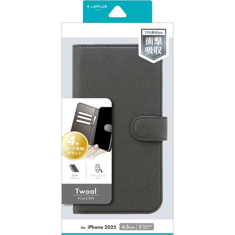 iPhone 17 薄型・大容量収納手帳ケース 「Twoal 4Card Belt」 ダークグレー