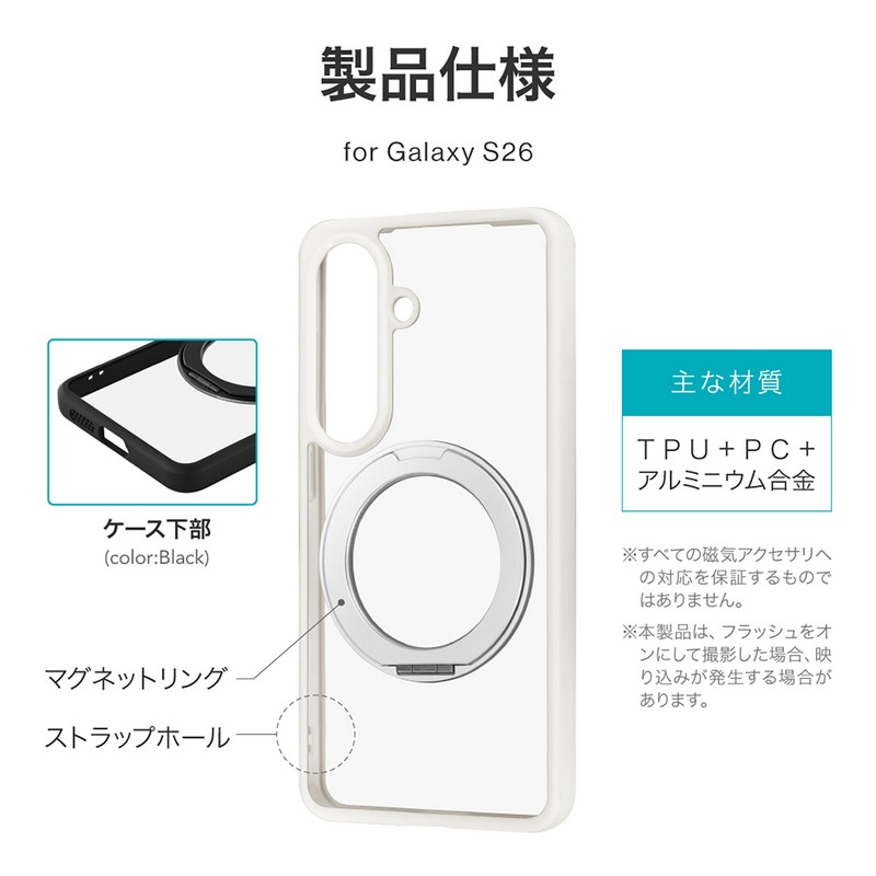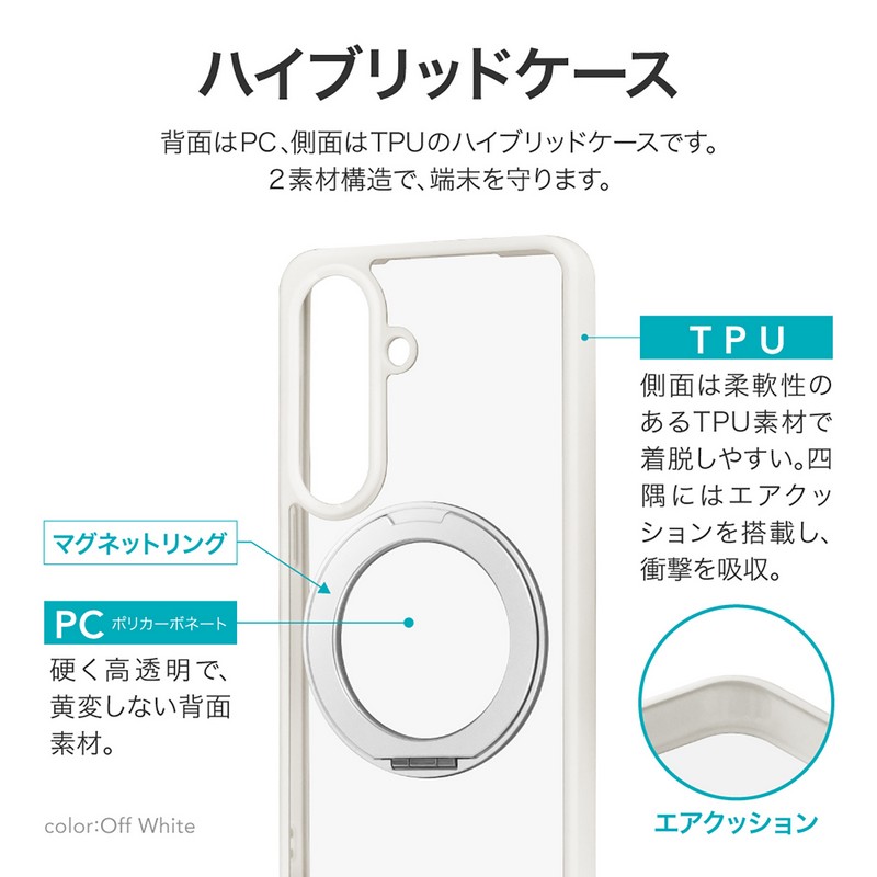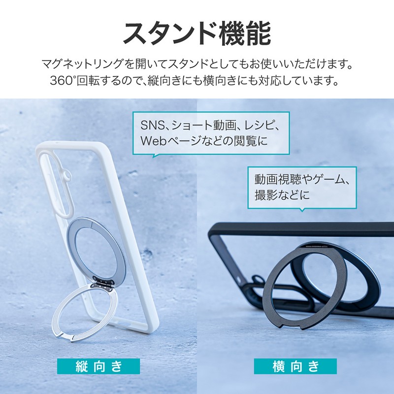 php // $web_item_description = wp_strip_all_tags( $web_item_description ); echo $web_item_description; ?> 【耐衝撃】360度回転&スタンドになるリングを搭載/磁気アクセサリ対応/衝撃を吸収するTPUと、硬く高透明なポリカーボネートのハイブリッドケース/柔軟なポリカーボネートなので着脱時にも割れにくい/レンズ周りを高く設計/ボタンやカメラレンズ周りを保護/ストラップホール搭載