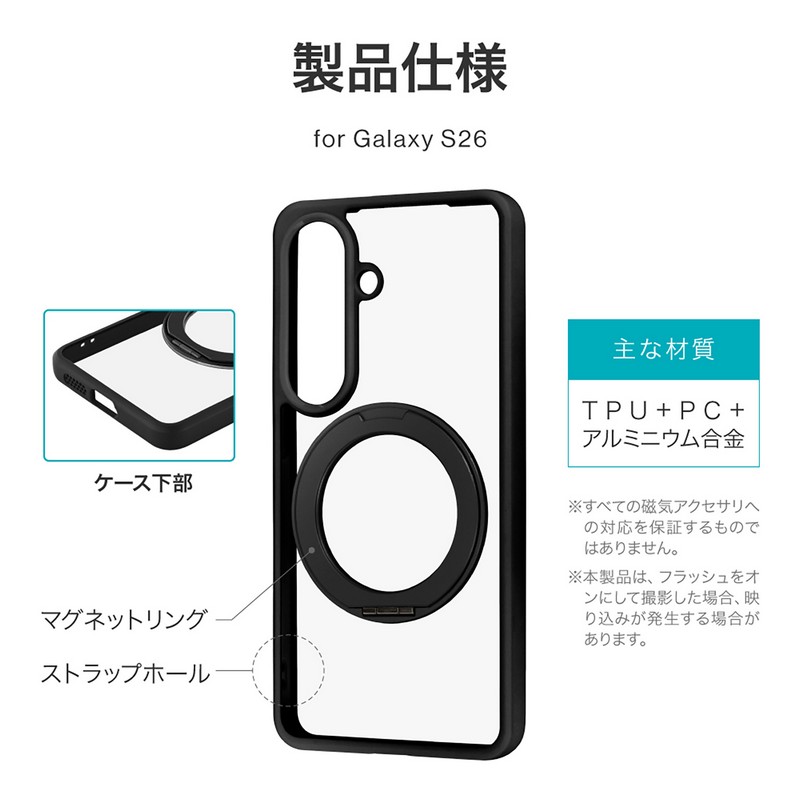 php // $web_item_description = wp_strip_all_tags( $web_item_description ); echo $web_item_description; ?> 【耐衝撃】360度回転&スタンドになるリングを搭載/磁気アクセサリ対応/衝撃を吸収するTPUと、硬く高透明なポリカーボネートのハイブリッドケース/柔軟なポリカーボネートなので着脱時にも割れにくい/レンズ周りを高く設計/ボタンやカメラレンズ周りを保護/ストラップホール搭載