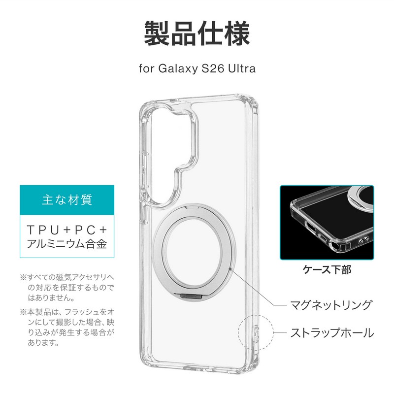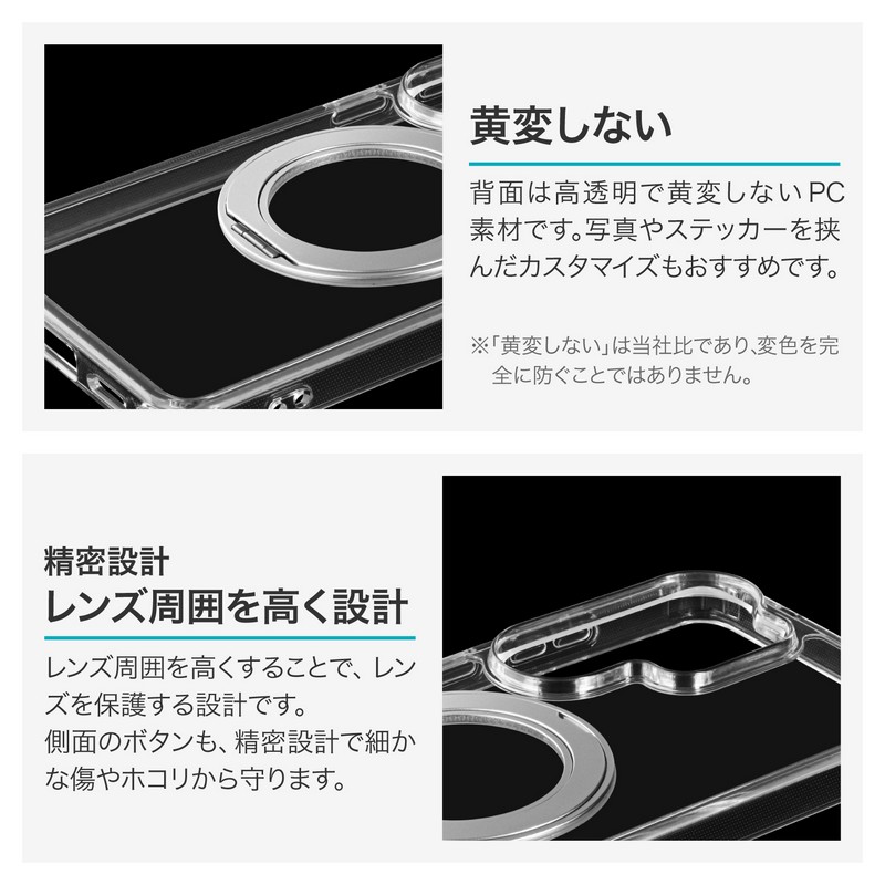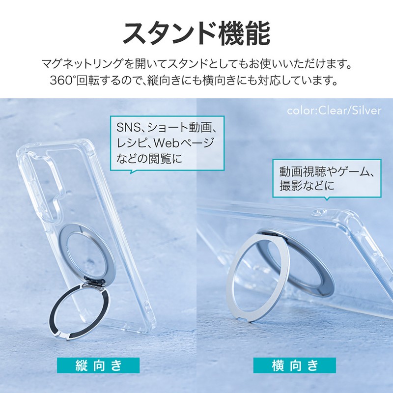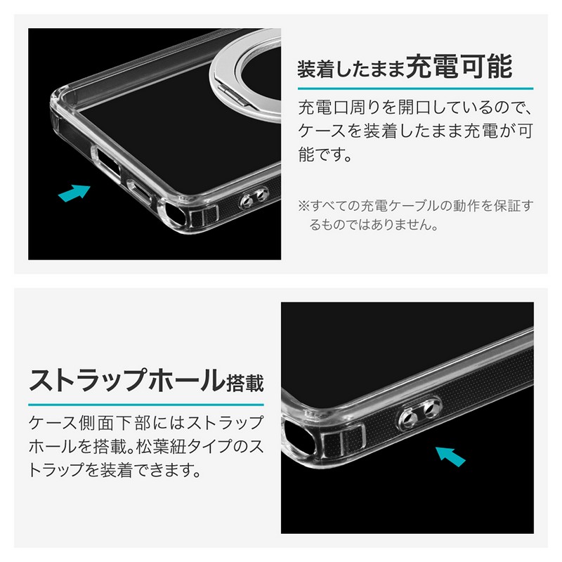 php // $web_item_description = wp_strip_all_tags( $web_item_description ); echo $web_item_description; ?> 【耐衝撃】360度回転&スタンドになるリングを搭載/磁気アクセサリ対応/硬く高透明なポリカーボネートと、柔らかく耐衝撃性に優れたTPUのハイブリッドケース/角に衝撃を吸収するエアクッションを搭載/柔軟性があり着脱が簡単/ボタンやカメラレンズ周りを保護/ストラップホール搭載