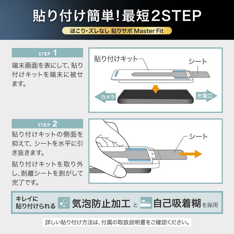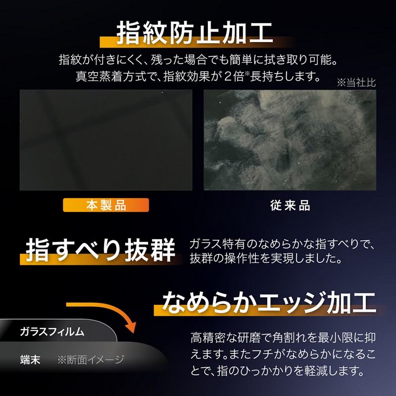 【14日間保証】【貼りサポMaster Fit付属】【指紋認証対応】しなやかで強靭なゴリラガラスを採用/超硬度10H表面強化ガラス/指紋防止効果2倍持続/驚異的な透明度/アルコール洗浄布・ホコリ除去ラベル・クリーニングクロス付属