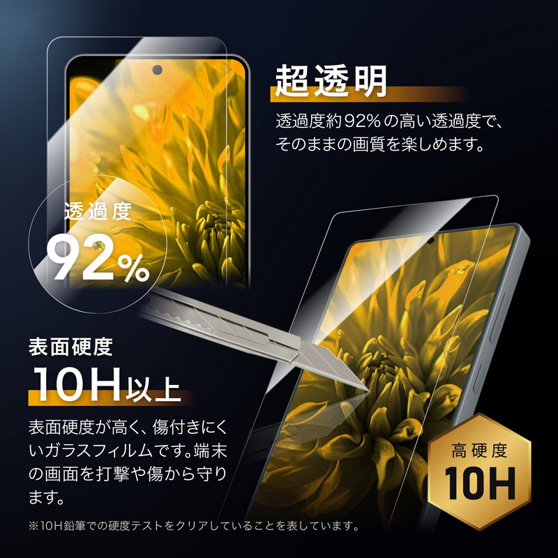 【貼り付けキットLite付属】【指紋認証対応】極薄0.25mm/超硬度10H表面強化ガラス/指紋防止効果2倍持続/驚異的な透明度/アルコール洗浄布・ホコリ除去ラベル・クリーニングクロス付属