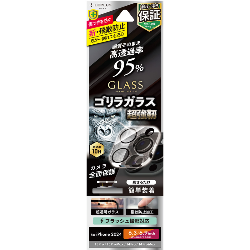 3. iPhone 16 Pro/16 Pro Max/15 Pro/15 Pro Max/14 Pro/14 Pro Max レンズ保護ガラスフィルム 「GLASS PREMIUM FILM」 全面保護 ゴリラガラス 高透過 約95%