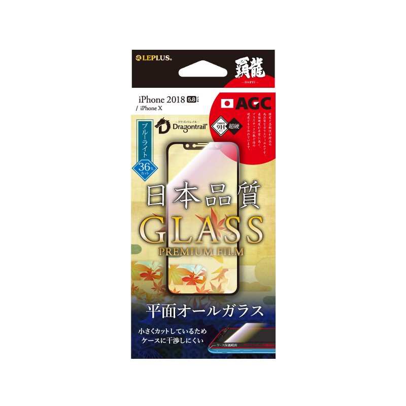 iPhone XS/iPhone X 【30日間保証】 ガラスフィルム 「GLASS PREMIUM FILM」 覇龍 日本品質 スタンダードサイズ 高光沢/ブルーライトカット/0.33mm JAN:4589762326802 型番:LP-IPSFGHB カラー: